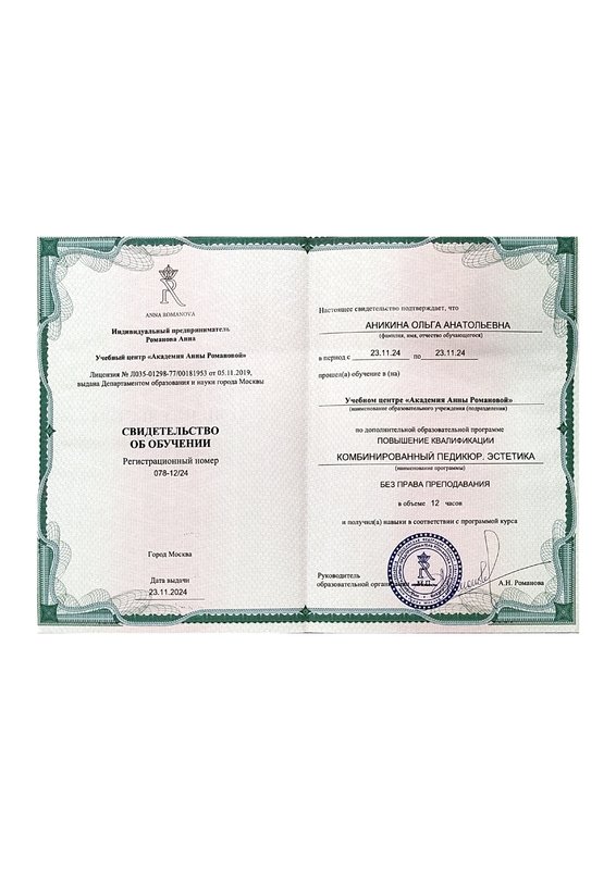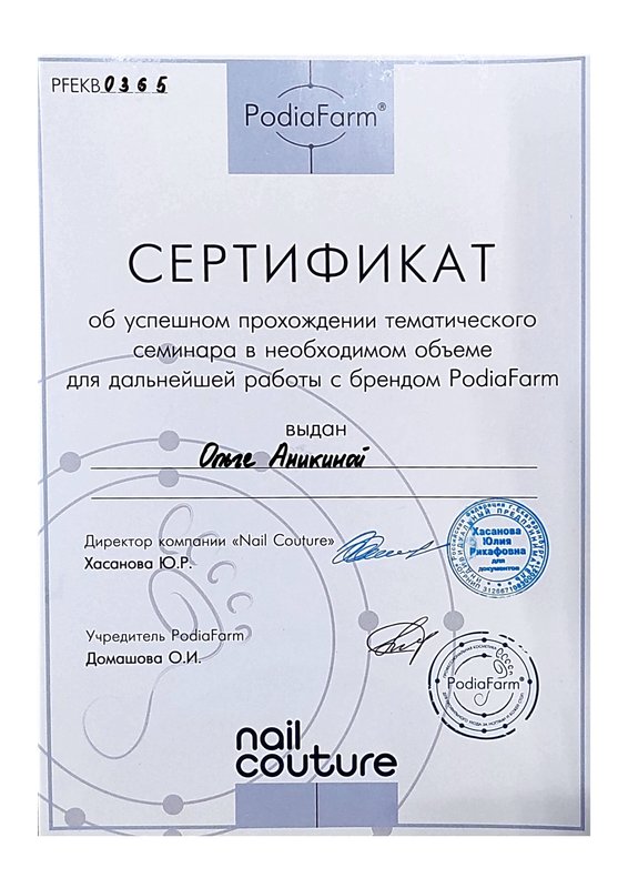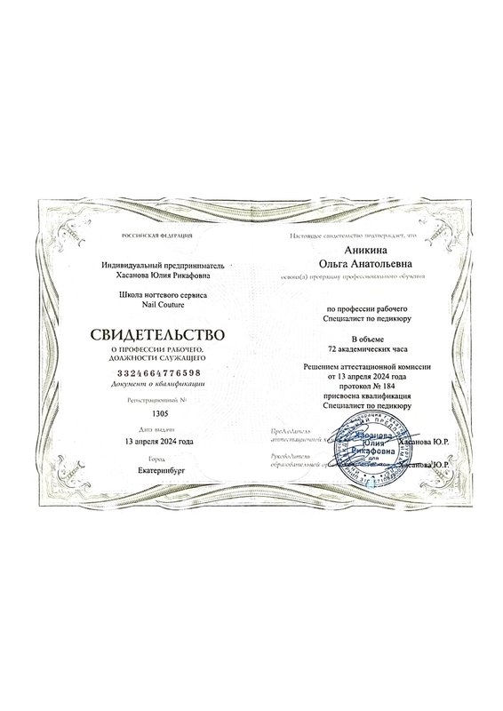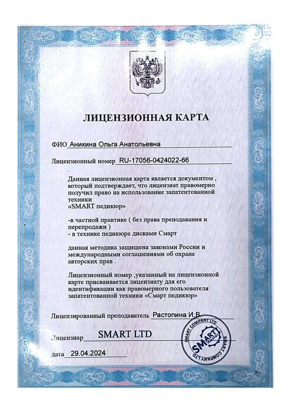 Я осталась очень довольна — и качеством услуг, и обслуживанием, и внимательным, доброжелательным отношением. Парамедицинский педикюр прошёл совершенно без боли, было очень комфортно, а итог действительно радует. Подолог Аникина Ольга Анатольевна — настоящий профессионал, она посоветовала регулярно посещать процедуры и тщательно следить за гигиеной.