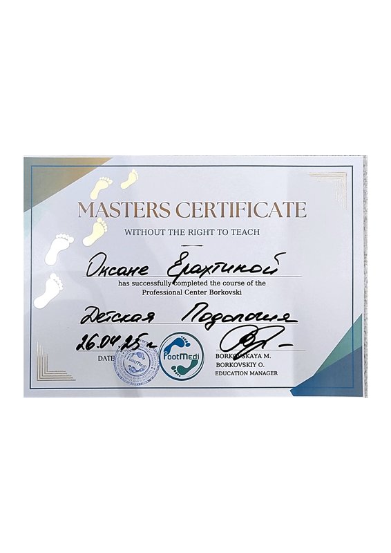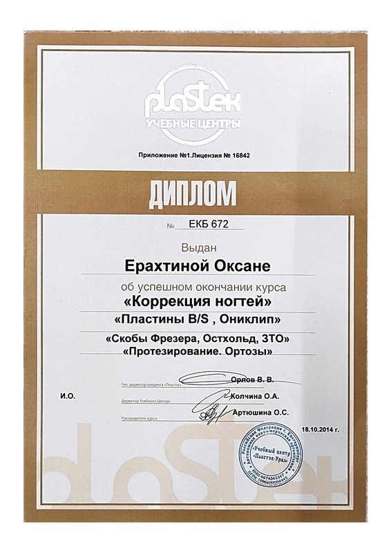 Всё прошло замечательно, консультация была очень содержательной, с внимательным и профессиональным подходом. Оксана Владимировна Ерахтина быстро нашла общий язык с моим подростком, сначала она подробно всё объяснила, подстригла ногти, наложила тампончики и дала полезные советы по уходу. На втором приёме установили пластины, рассказали важные рекомендации, не мочить ноги, содержать их в сухости, чтобы пластины не отклеивались, а также не трогать ногти руками. Впечатления о центре остались исключительно положительные, я очень благодарна за внимательное отношение и квалифицированную помощь.