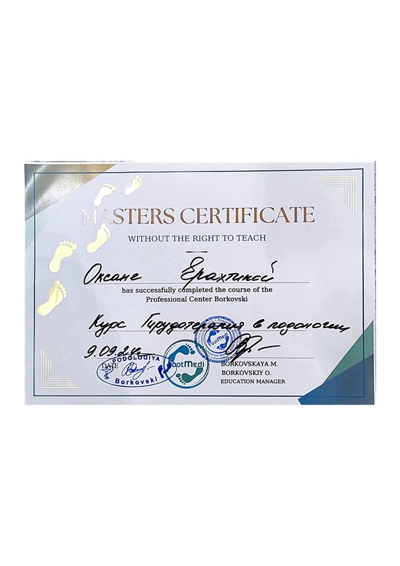 Доктор Подолог Ерахтина Оксана Владимировна - очень приятный человек и профессионал своего дела. Прием у нее прошел быстро и профессионально. Доктор знает свое дело, было приятно с ней общаться и находиться в ее присутствии. Обратилась с проблемой ногтя, вопрос был решен положительно - его обработали. После процедуры дали рекомендации, предупредили о возможных проблемах и посоветовали приходить, все по обычной схеме.